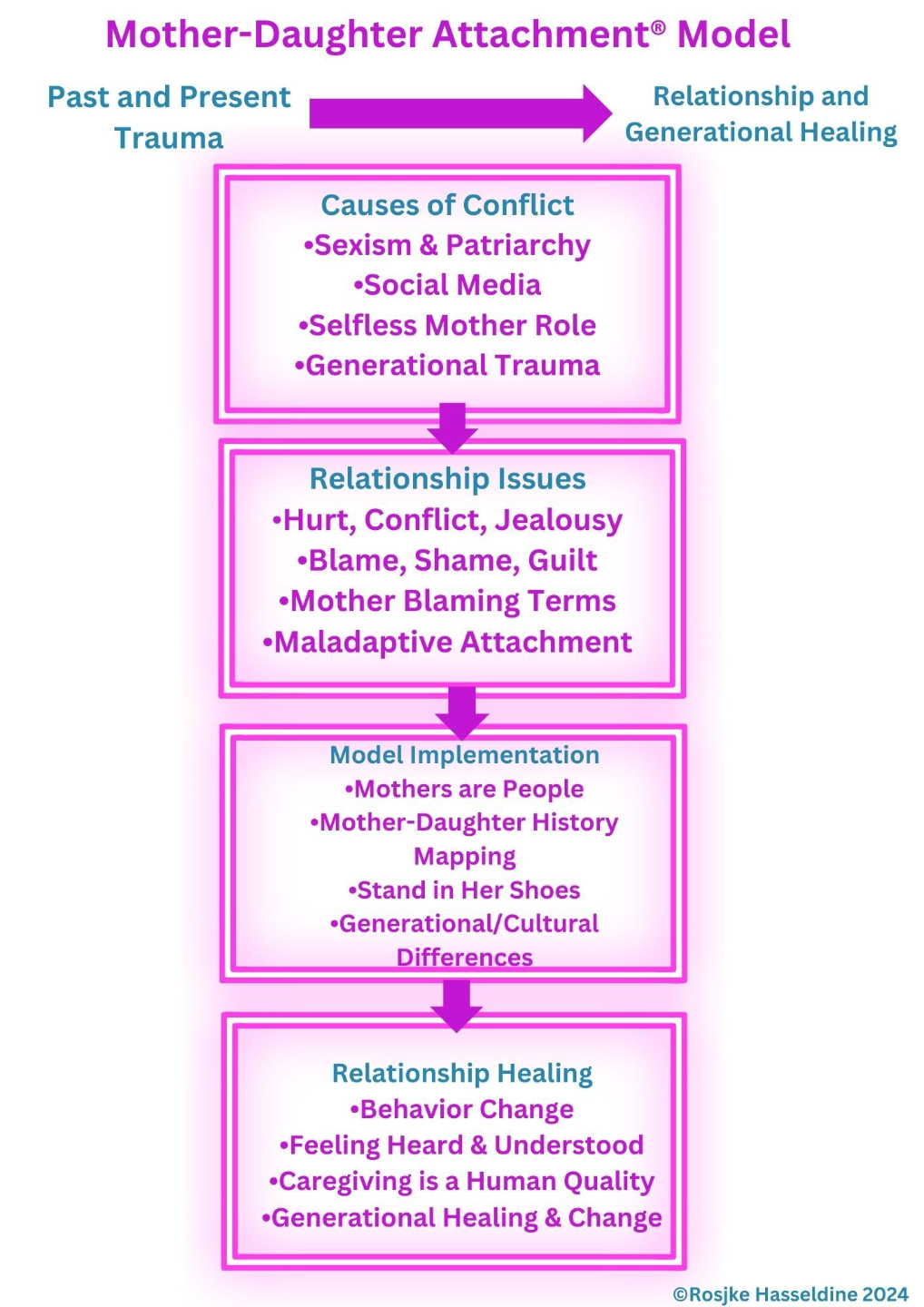 Mother-Daughter Attachment® Model (MDAM) grew out of Rosjke Hasseldine's 30+ years as a mother-daughter therapist.